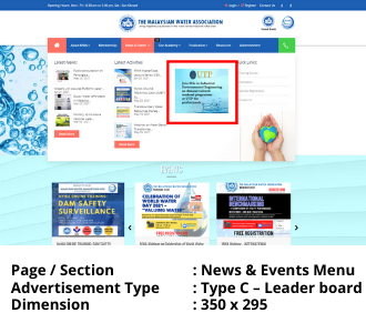 | News & Events Menu | Type C – Leader board | 350 x 295 | RM550 | RM750 |