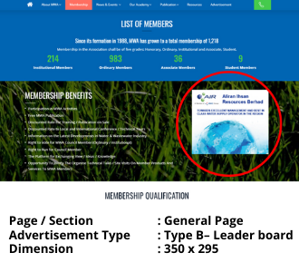 | General Page * | Type B – Leader board | 350 x 295 | RM300 | RM450 |