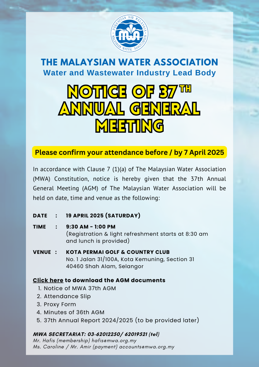 Notice MWA 37th AGM Date: Apr 19, 2025 Click here to download the AGM documents Notice of MWA 37th AGM Attendance Slip Proxy Form Minutes of 36th AGM 37th Annual Report 2024/2025 (to be provided later) Share Us :