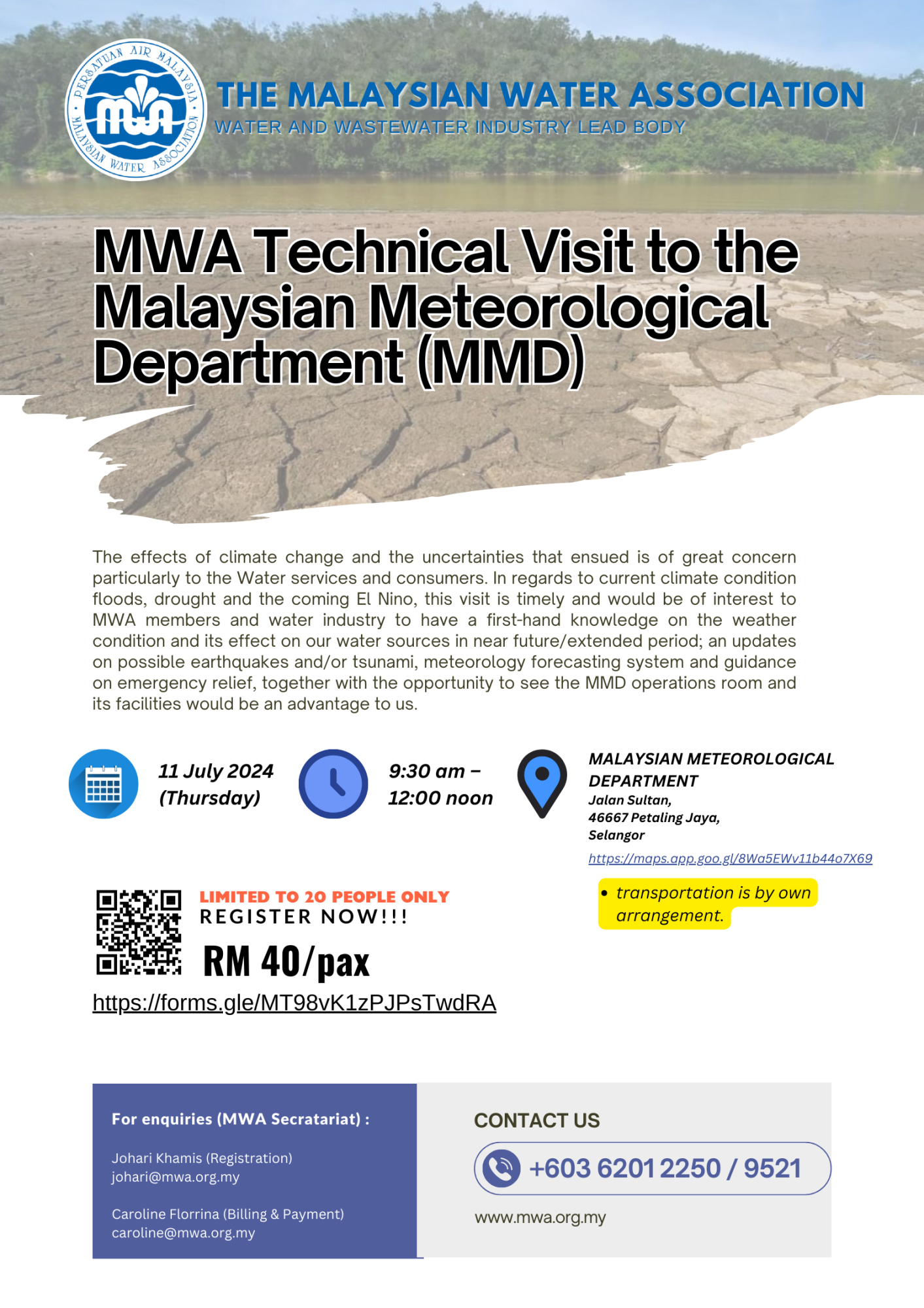 MWA Technical Visit to the Malaysian Meteorological Department (MMD) The effects of climate change and the uncertainties that ensued is of great concern particularly to the Water services and our consumers. Hence, in regards to current climate... ...