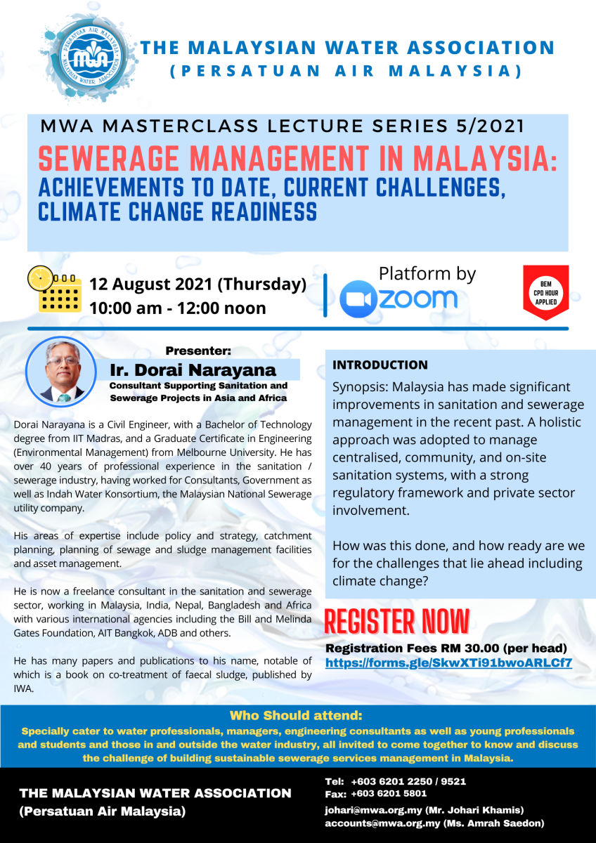 Sewerage Management in Malaysia: Achievement to Date, Current Challenges, Climate Change Readiness