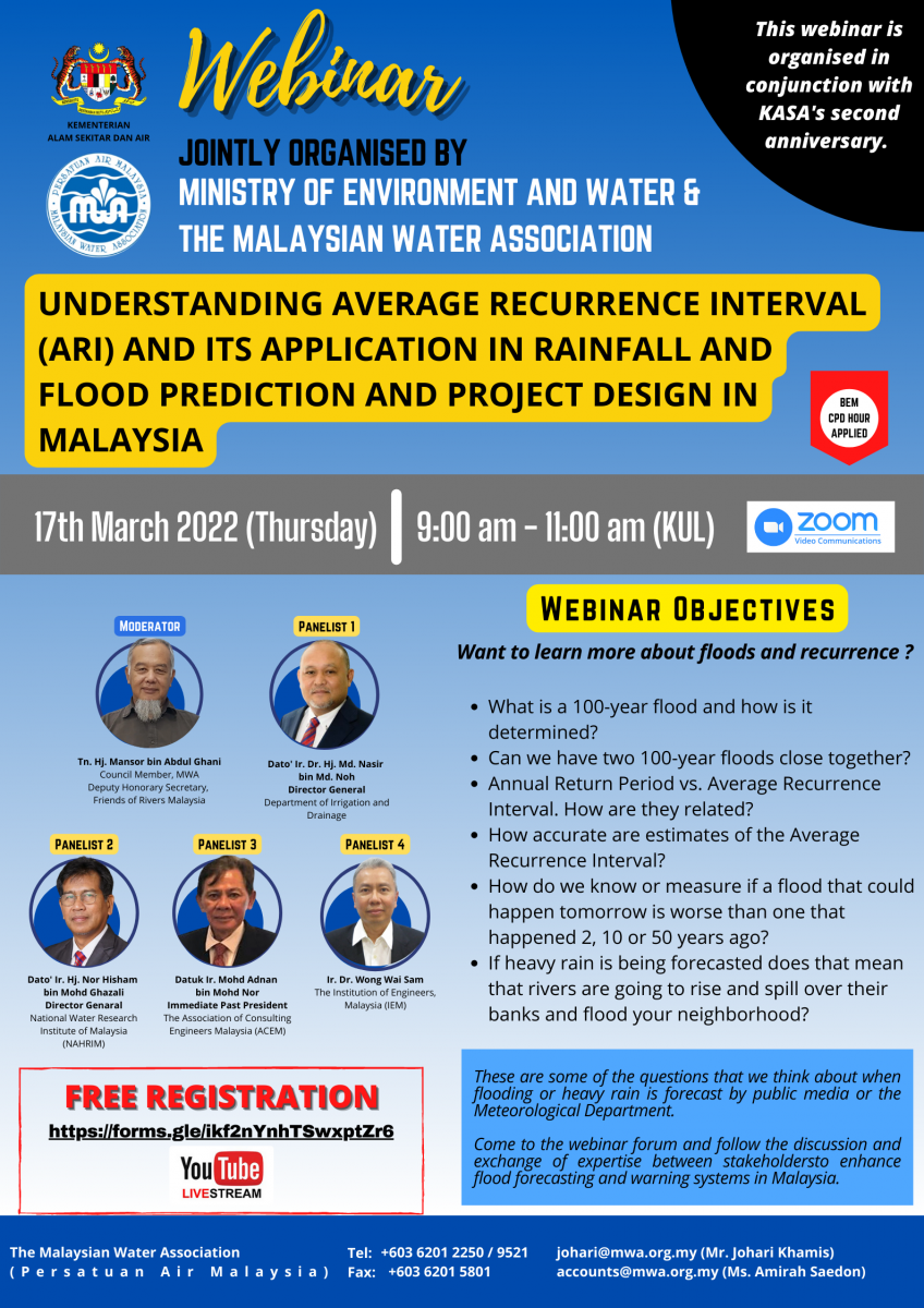 Come to the webinar forum and follow the discussion and exchange of expertise between stakeholdersto enhance flood forecasting and warning systems in Malaysia.