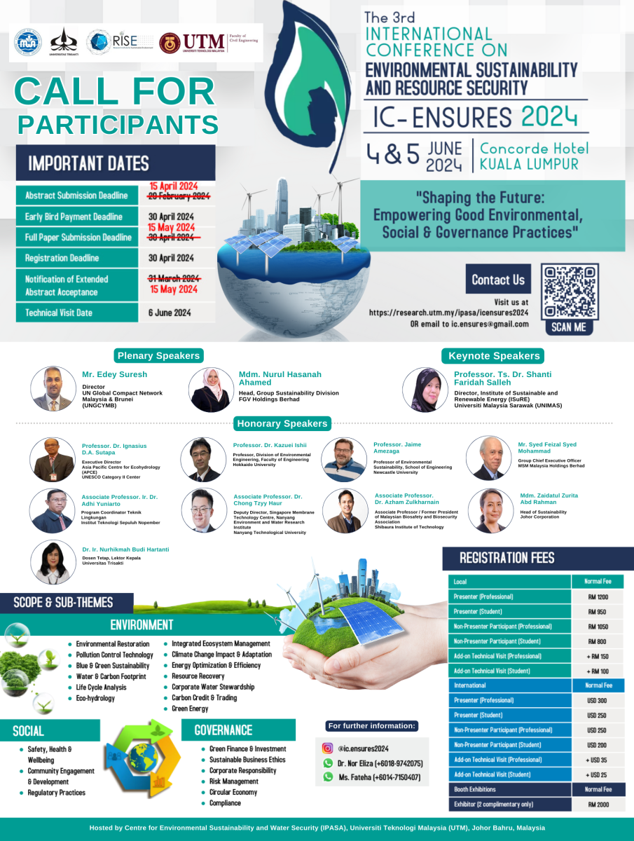The 3rd International Conference on Environmental Sustainability and Resource Security (IC-ENSURES 2024).