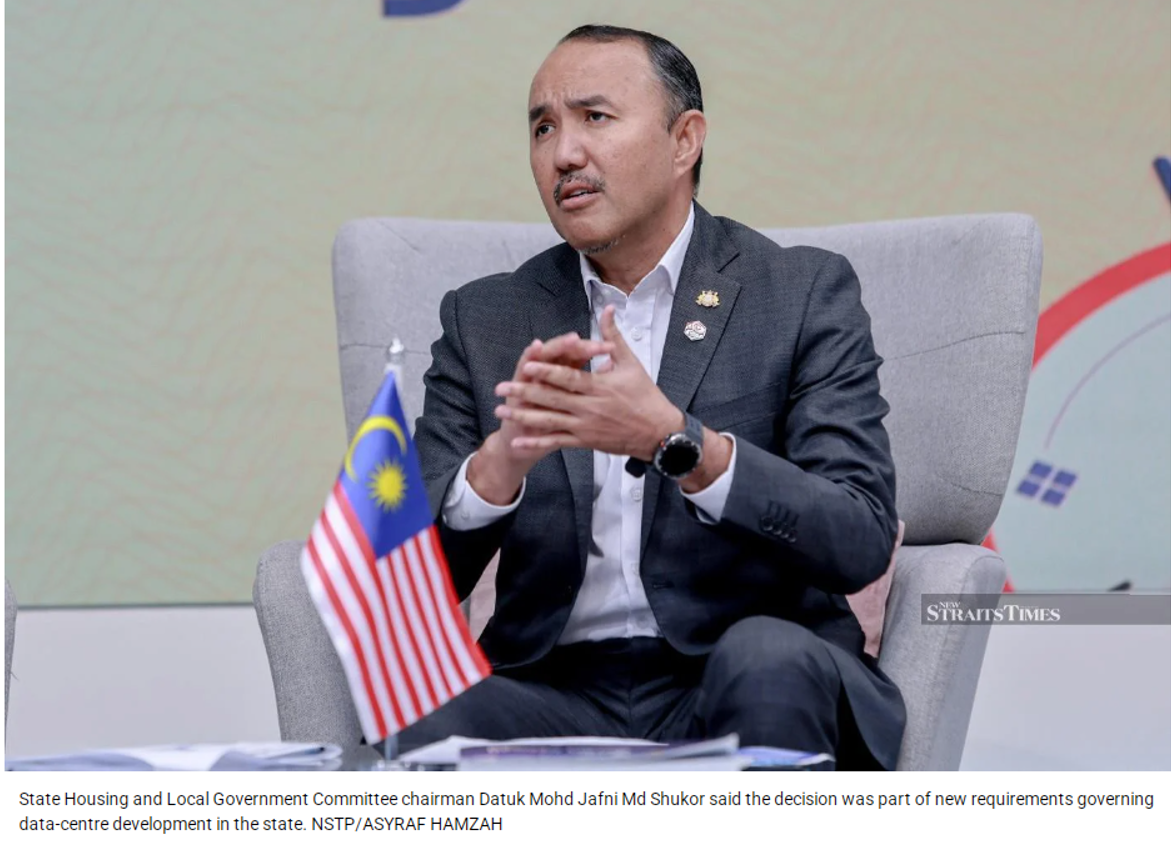 State Housing and Local Government Committee chairman Datuk Mohd Jafni Md Shukor said the decision was part of new requirements governing data-centre development in the state.