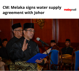 MELAKA, Dec 4 — The Melaka state government has signed an agreement with the Johor state government on water supply for the state, yesterday.